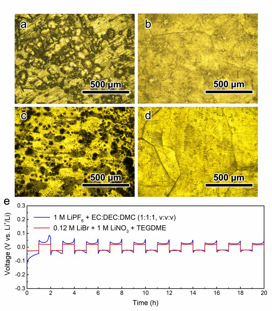 文章从腐蚀科学的角度提出了一种通过原位和非原位电化学抛光锂金属来抑制枝晶的通用策略。这种抛光技术极大地平滑了锂金属表面,并在电池循环过程中同时动态再生了均匀的SEI膜,从而抑制了枝晶锂的成核位点,为锂的均匀沉积建立了理想的基质。并且,抛光后的锂在对称电池和与NCM811(或LFP)配合的全电池中均表现出稳定的电压分布和高锂利用率。抛光锂对称电池的长循环寿命表明锂的均匀无枝晶沉积。该策略通过在重复循环过程中提供再生均匀的锂表面,为实现锂的均匀沉积提供了新的方向。