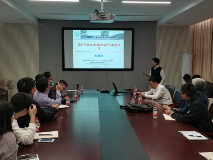 师生作了题为“高分子复合材料结构调控与性能研究”的学术报告。 朱雨田教授是杭州师范大学材料与化学化工学院博导,2001年7月获南昌大学理学学士学位;2006年7月获中国科学院长春应用化学研究所理学博士学位。2006年10月至2008年9月,比利时天主教鲁汶大学 (Katholieke Universiteit Leuven),博士后;2008年10月至2010年9月,美国孟菲斯大学(The University of Memphis)、博士后;2010年10月至2018年11月,中国科学院长春应用化学研究所高分子物理与化学国家重点实验室工作,任副研究员;2018年12月,加入杭州师范大学,任职教授。主要研究方向为高分子自组装材料、高分子导电、导热复合材料结构与性能调控。以一作/通讯作者发表SCI论文70余篇,他引2500余次。获浙江省自然科学基金杰出青年基金、吉林省自然科学学术成果奖二等奖1项(排名第一)、主持国家自然科学基金项目4项、其他省部级项目3项,参与国家基金重点项目1项及科技部重点研发计划1项。担任Springer 出版集团Advanced Composites and Hybrid Materials期刊编委。 朱雨田教授介绍了针对不同尺度下的高分子材料多级结构,通过外场刺激、成型加工手段等对材料内部多级结构的构筑及宏观性能进行可控调节与性能提升方面工作的研究进展。本次报告使广大师生对高分子复合材料结构调控与性能方面的研究有了深入的了解,并从中学习到了很多科学研究的道理,深受探花做爱