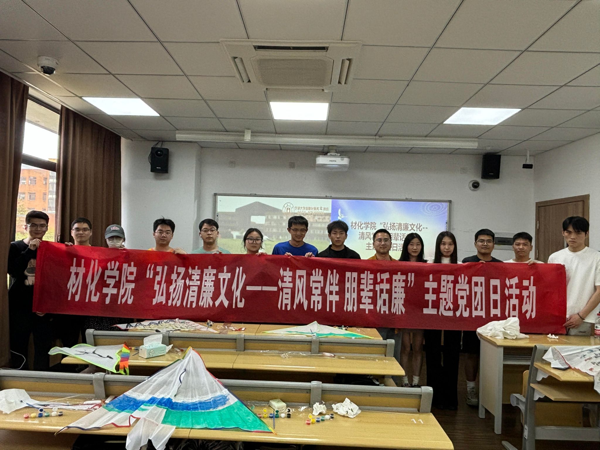 为深入推进清廉文化建设,营造崇廉尚洁的良好氛围,419日,研究生先进分离材料与催化党支部、24级研究生材料2班团支部联合开展“清风常伴 朋辈话廉”风筝DIY主题团日活动。活动将廉洁元素与传统手工艺巧妙融合,让清风正气在欢声笑语中浸润每一位参与者的心田。
