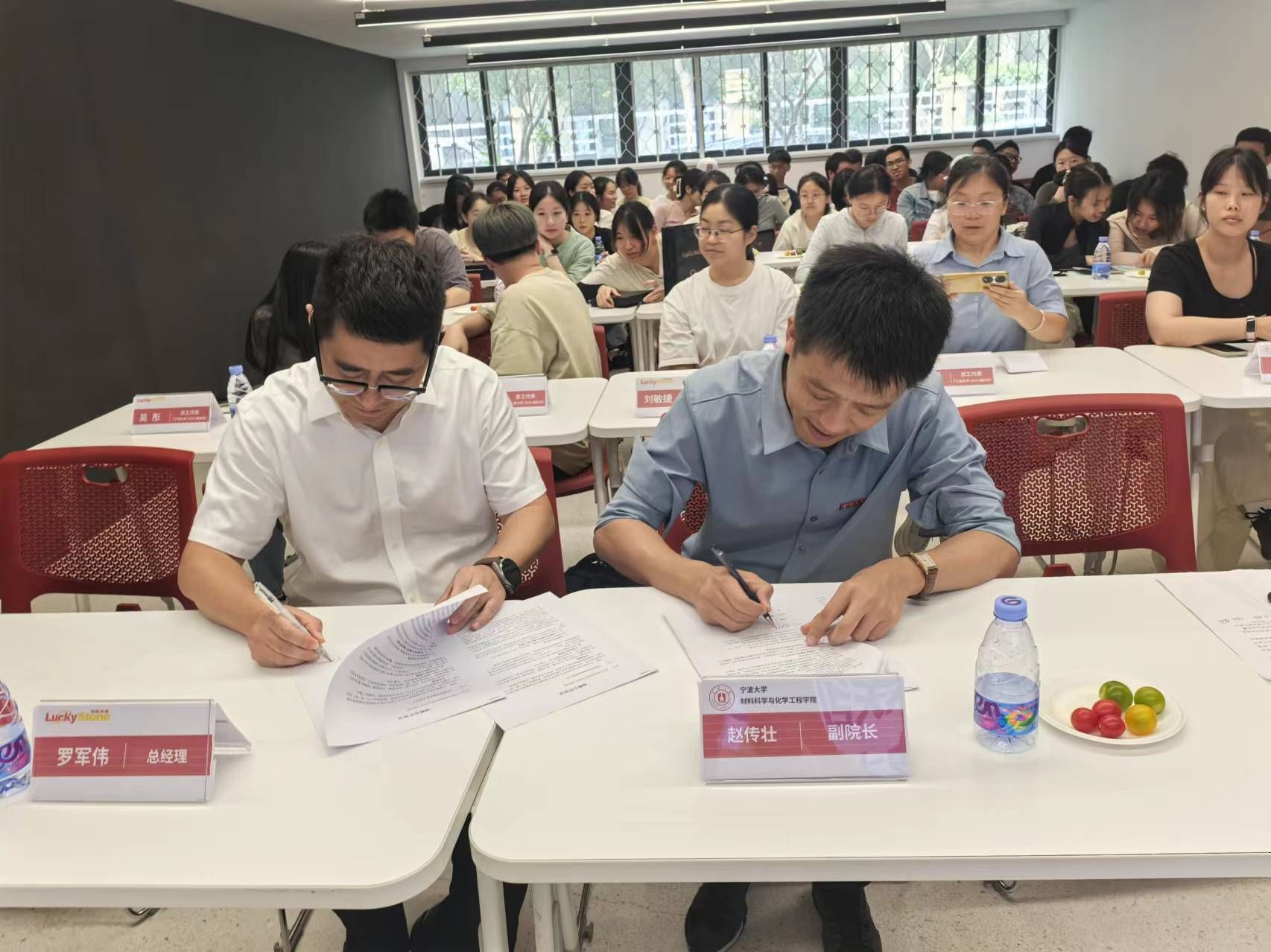 赵传壮与罗军伟签订实习基地共建协议,并举行了授牌仪式。随后公司负责人带领学院师生一行进行了参观校企双方就集团校招需要人才需求、教学实习具体事项等进行了深入的座谈交流。
