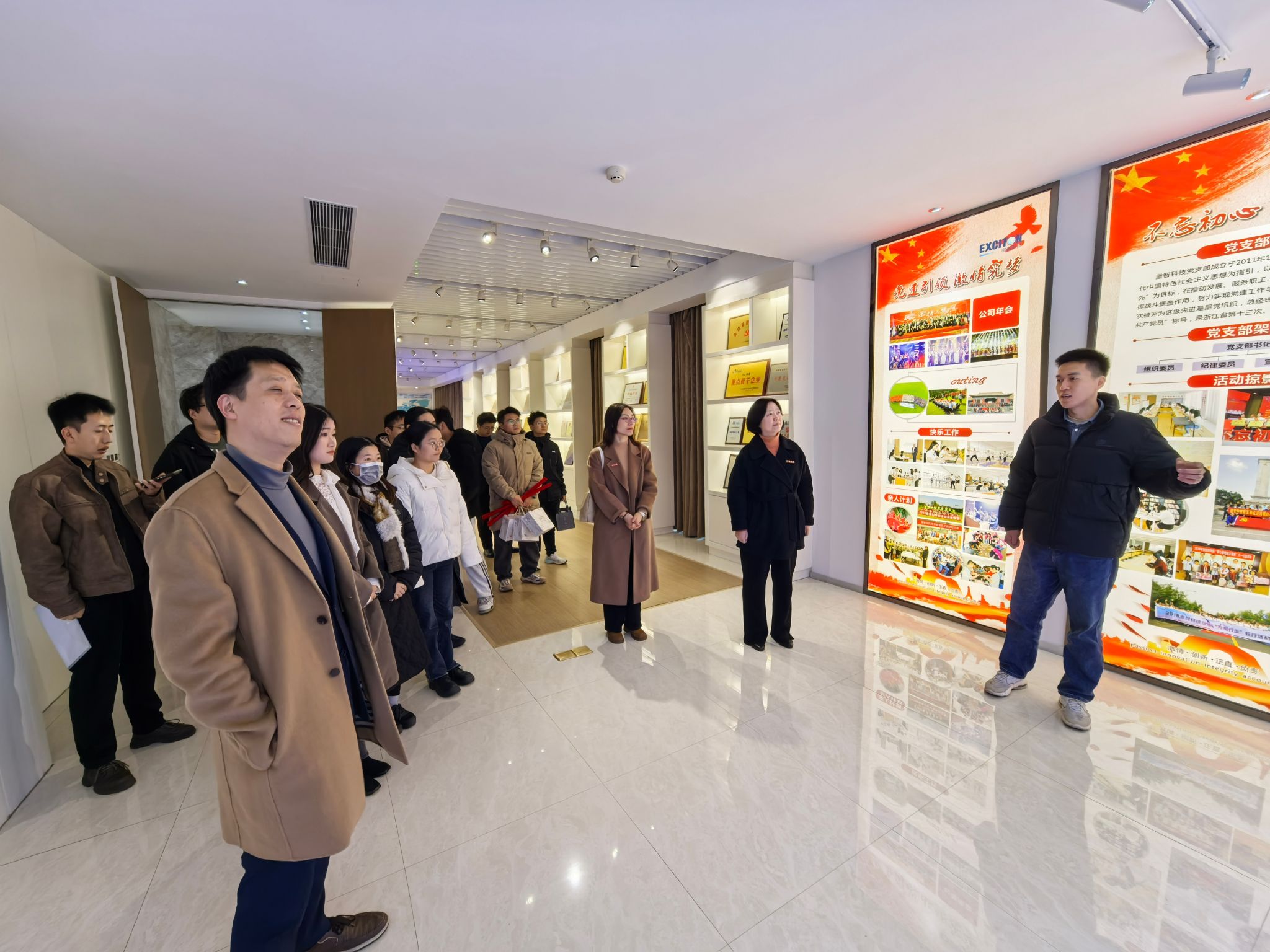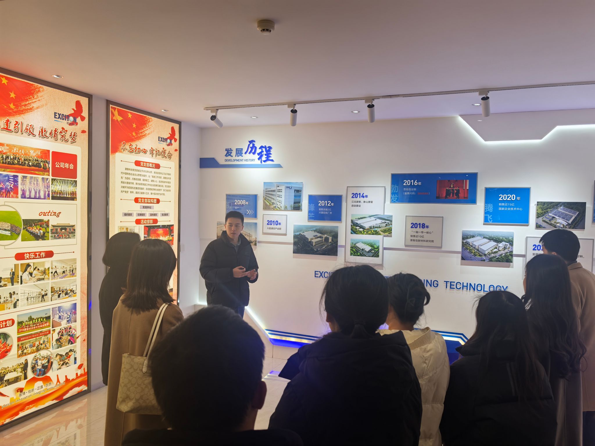 在公司负责人带领下,探花做爱 一行参观了公司展厅,叶志鹏校友详细介绍了公司的发展历程、产品种类、研发流程等情况。随后,校企双方就产学研合作、党建共建等内容和同学们关注的职业发展路径、公司人才培养体系、职业发展前景等问题进行了深入的座谈交流。