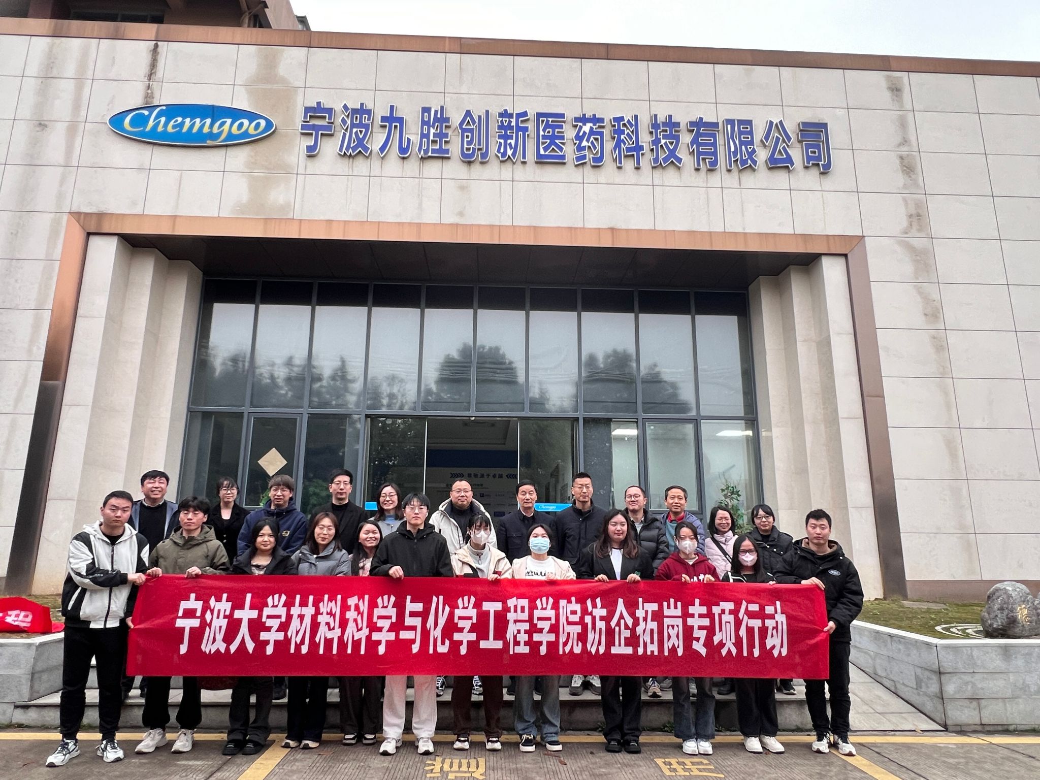 深入了解就业市场发掘企业用人需求,推动学生高质量充分就业,3月14日,材化学院特聘院长丁传凡、副院长周明炯、党委副书记尹慧、先进分离与催化材料研究所所长吴大朋、质谱院教师党支部党员等教师代表带领学院21名学生代表参观走访了优质企业宁波九胜创新医药科技有限公司。公司副总经理郑赞胜人力资源经理徐卓晟等公司负责人热情接待学院师生一行公司高级研发主管、学院2015届优秀校友徐林峰参加座谈。