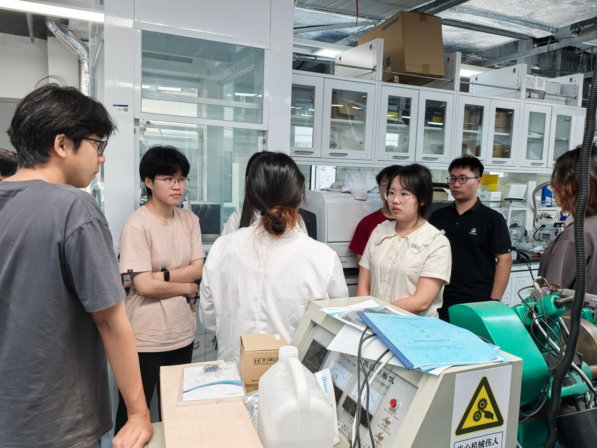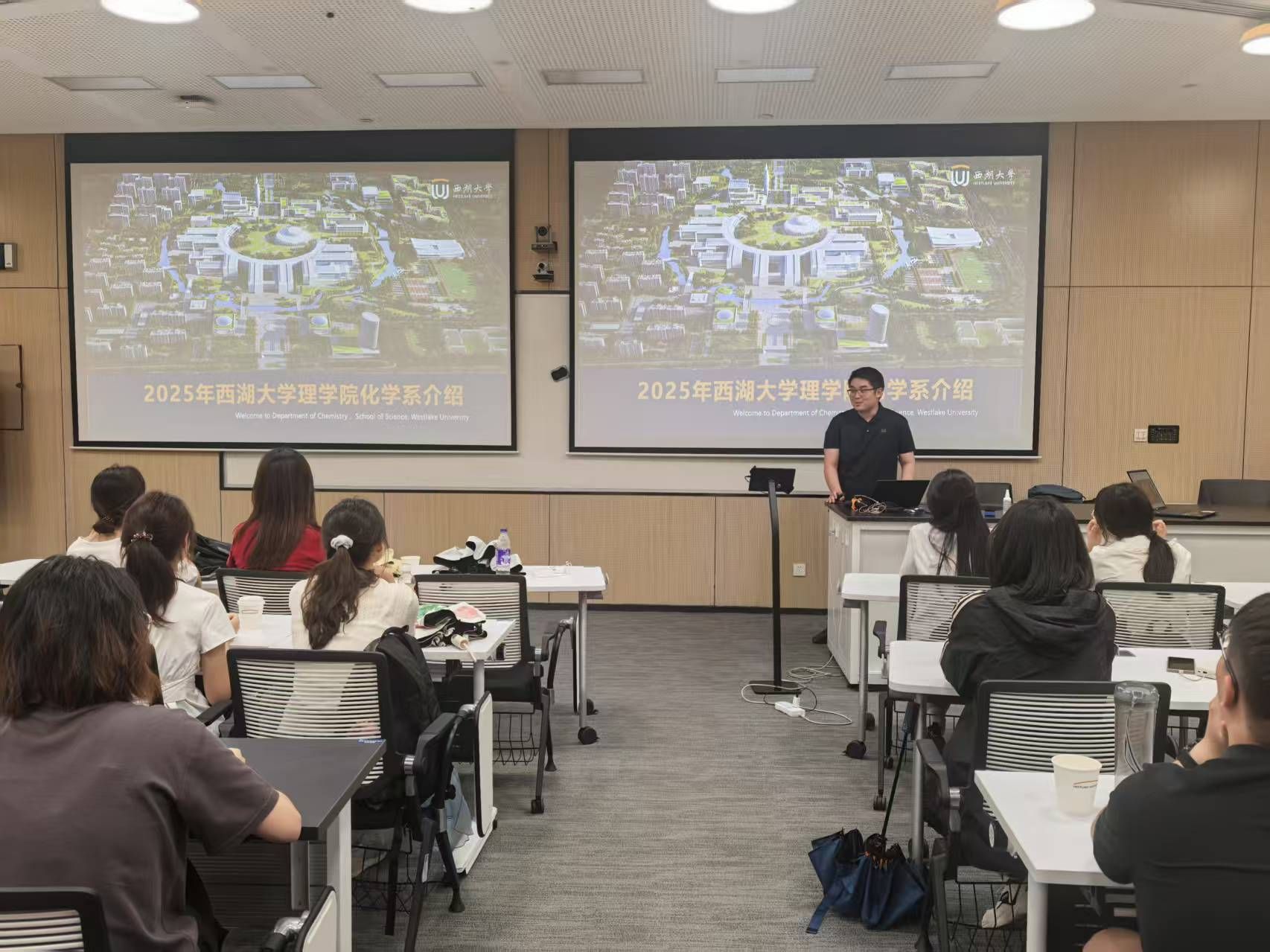 活动伊始,吴周翔同学作为优秀校友代表与参访师生进行了深入交流,介绍经验,分享在西湖大学学习的感悟,鼓励同学们认真思考,积极准备,尽早确定深造方向和具体规划。 在西湖大学理学院相关老师的带领下,学院师生参观了校园和位于西湖大学核心地带最具代表性的学术环,在研博士生带领师生参观实验室,他们详细介绍了实验室的科学仪器及使用情况。