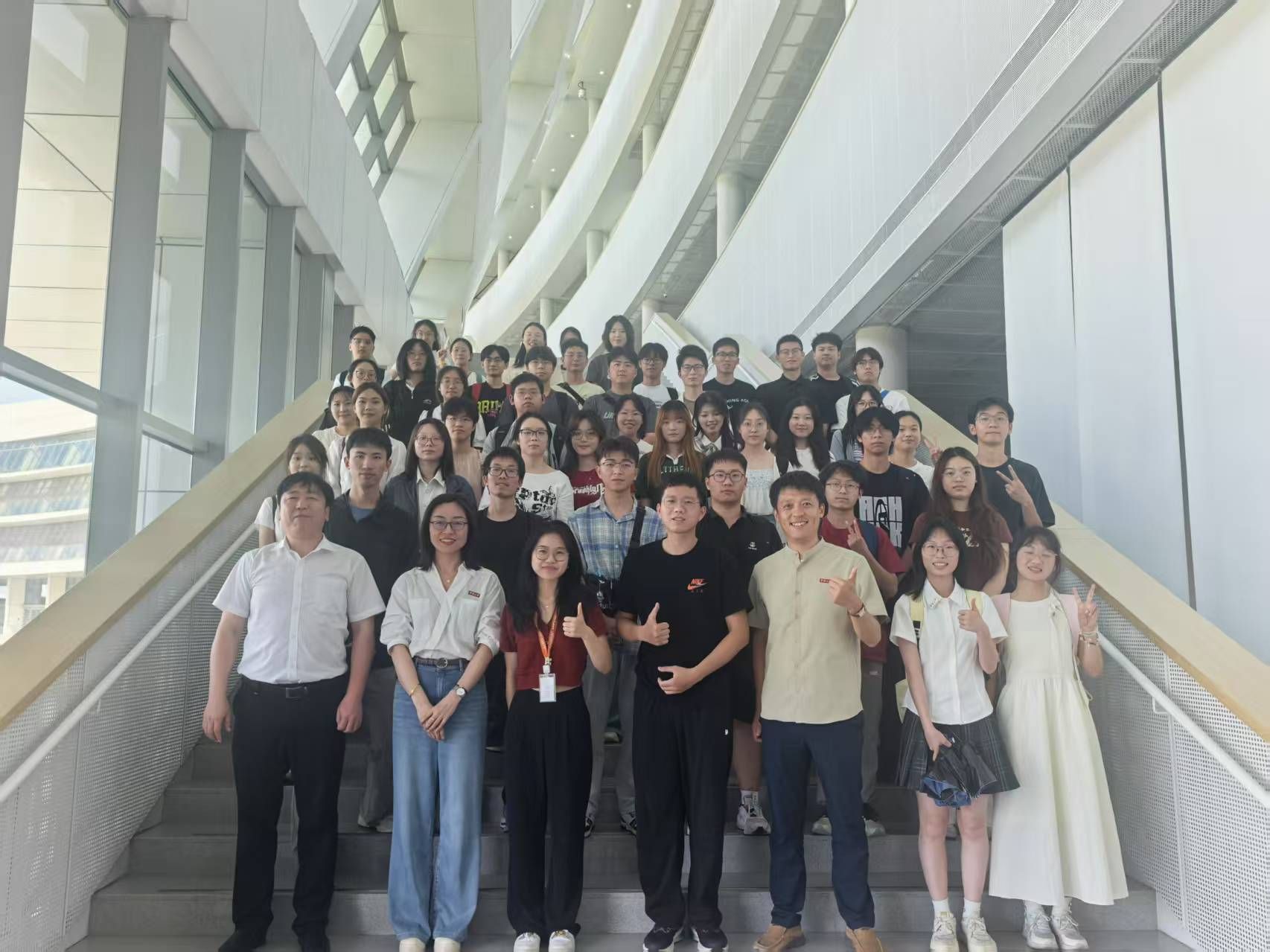 师生一行48人在副院长赵传壮和院党委副书记尹慧的带队下,赴西湖大学理学院参观交流,了解人才培养和招生录取等详细情况。升入西湖大学继续深造的学院2022届和2024届优秀校友曹婷婷和吴周翔也参加了此次参访活动。