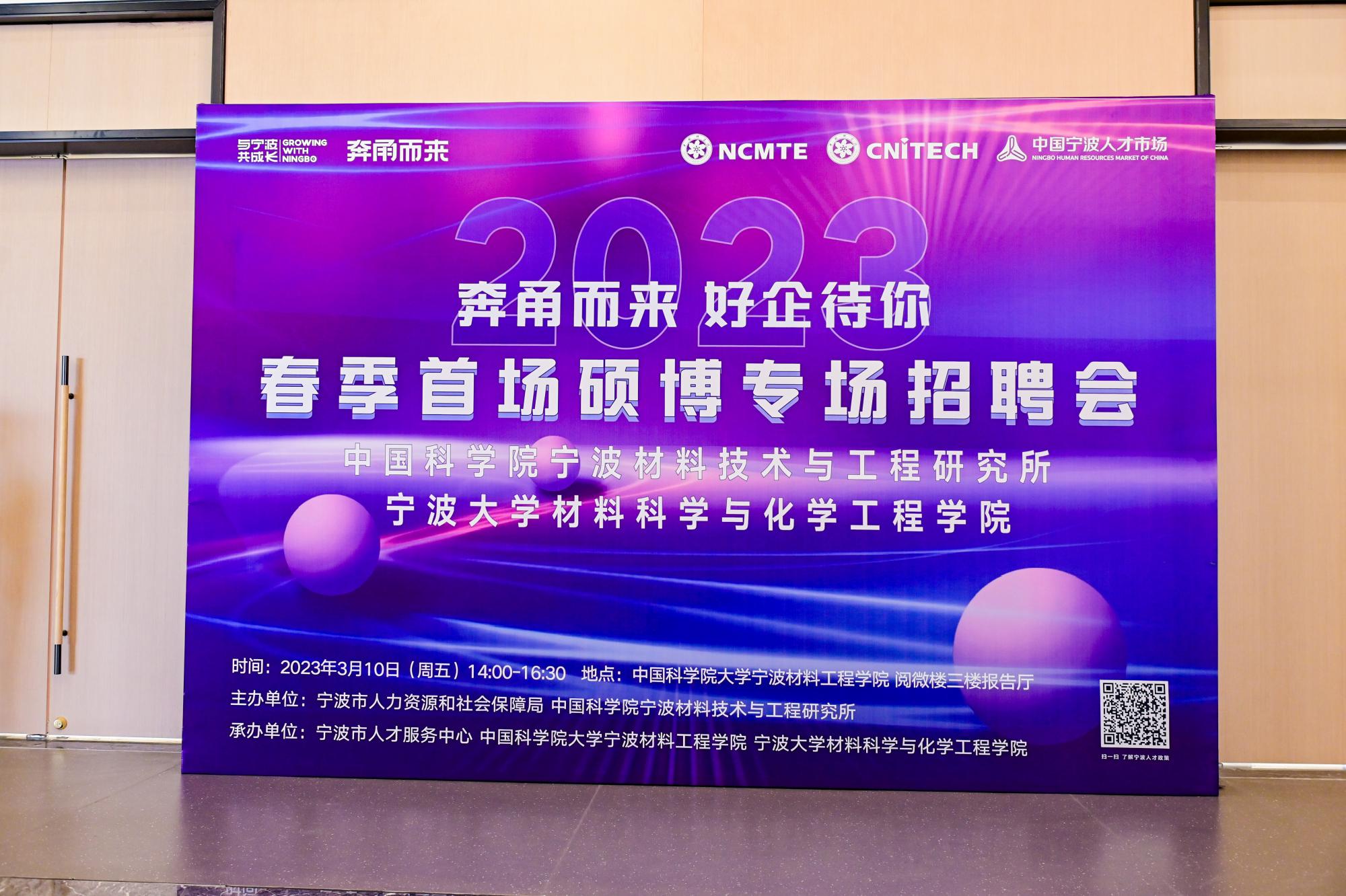 为进一步拓宽毕业生就业渠道,做好就业指导服务工作,3月10日,材化学院联合中国科学院宁波材料所、宁波市人才服务中心在中国科学院大学宁波材料工程学院举办2023“奔甬而来•好企待你”春季首场硕博专场招聘会。