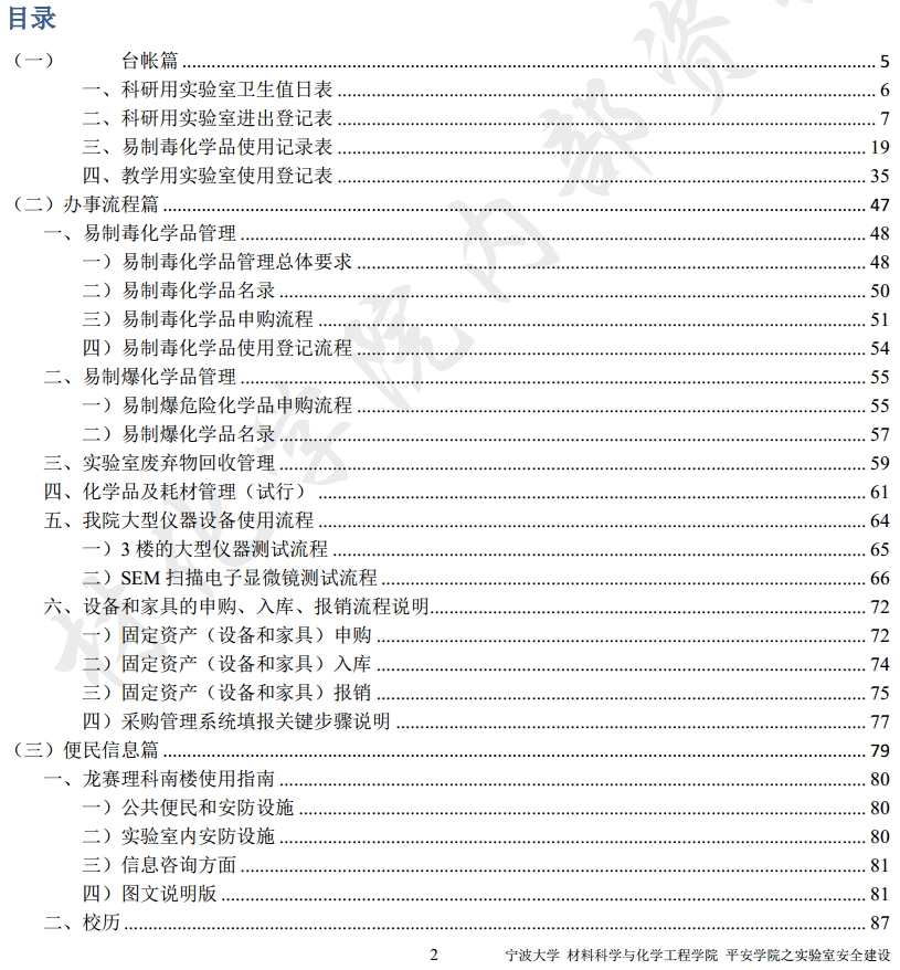 1) “台帐篇”为值日表、进出登记表及易制毒使用记录,请认真如实填写,需上交学院存档保存;