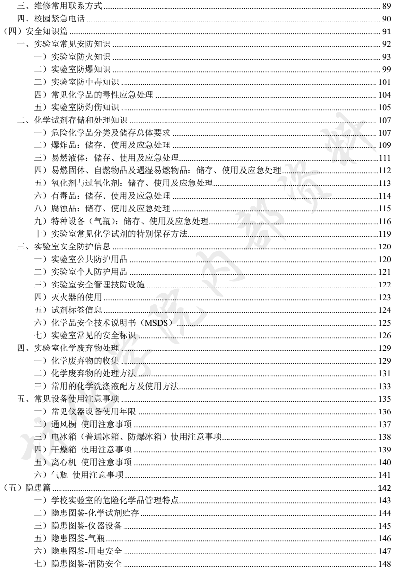 4) “安全知识篇”为实验室常见的安全防范相关知识;