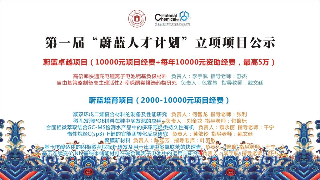 3)蔚蓝培育项目(省新苗人才计划项目):直接评定为当年省新苗人才计划项目,资助金额为0.5万(项目经费)。