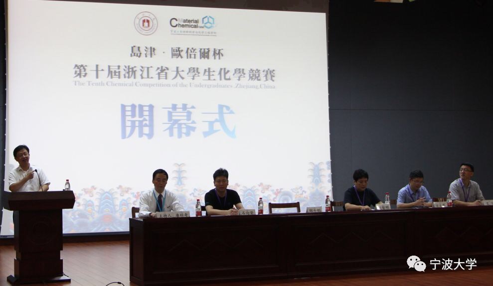 副校长邵千钧、教育部高等学校大学课程教学指导委员会委员、浙江省高校化学与化工制药类专业教学指导委员会秘书长倪哲明,浙江省大学生化学竞赛巡视员、浙江财经大学教务处副处长石向荣,浙江省大学生化学竞赛主任委员、浙江大学教授方文军,浙江省大学生化学竞赛委员会秘书长、浙江工业大学教授艾宁等出席开幕式。邵千钧代表学校致欢迎词,倪哲明、艾宁分别代表省高校化学与化工制药类专业教指委、省化学竞赛委员会致辞。