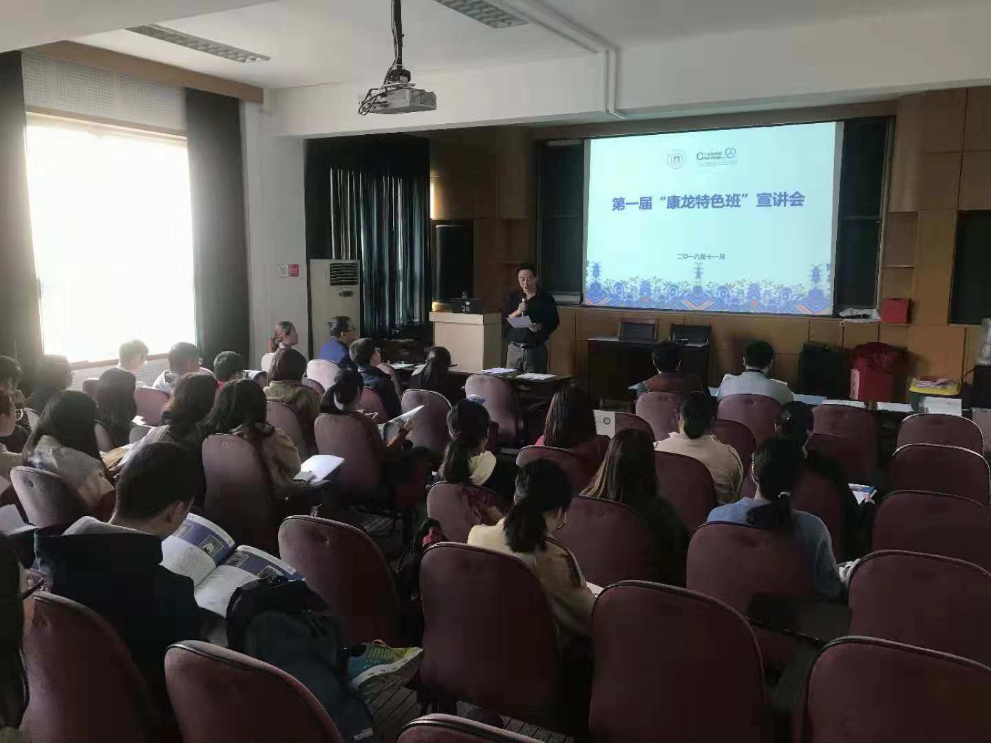 召开第一届“康龙特色班”宣讲会,17级化学专业全体本科生参加。