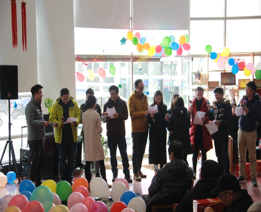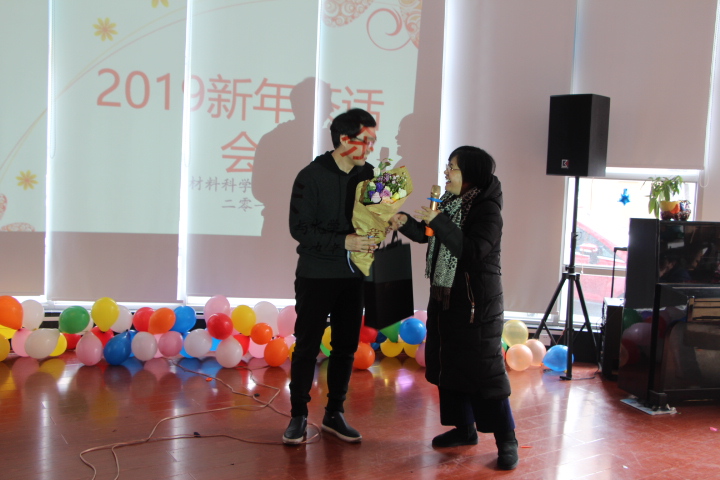 第二个环节是各系所和部门的文艺表演并穿插游戏和抽奖活动。化学系的合唱《一剪梅》,无机所朗诵的《面朝大海,春暖花开》,应化系奉献的《五月的鲜花》和《南屏晚钟》展示了平时和实验室瓶瓶罐罐打交道的老师们诗情画意的另一面。由各部门选两个代表参加的游戏“踩气球”和“爱的抱抱”掀起了茶话会的小高潮,平时认识、交流机会不多的老师和不少新引进的老师有了一个认识和互动的平台。实验中心倾情演唱《爱》,高分子系高歌一曲《沧海一声笑》,年代感十足,在致敬小虎队和缅怀金庸先生的歌声中,我们不禁感慨时光飞逝,同时也提醒大家应更加珍惜每个当下。行政团队表演的《我的材化,我的祖国》将严肃的朗诵与爆笑的三句半表演结合来表达满满的家国情怀。在改革开放四十周年的大背景下深情赞美《我的祖国》,以三句半的表演形式诙谐地总结了学院2018各方面的成绩,并对全院上下表达了真诚祝福。教职工子女演唱的《妈妈宝贝》充满了童趣和天真,让我们看到了教师家庭和睦,看到了小家和大家的未来。