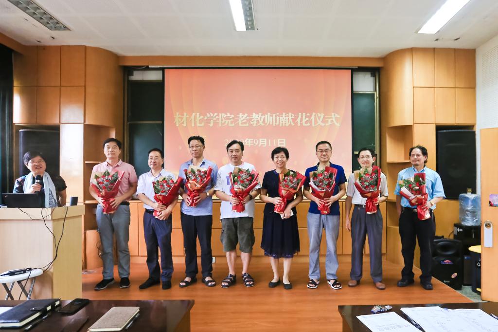 新教师入职和教龄30年老教师献花仪式,学院全体教职工参加。