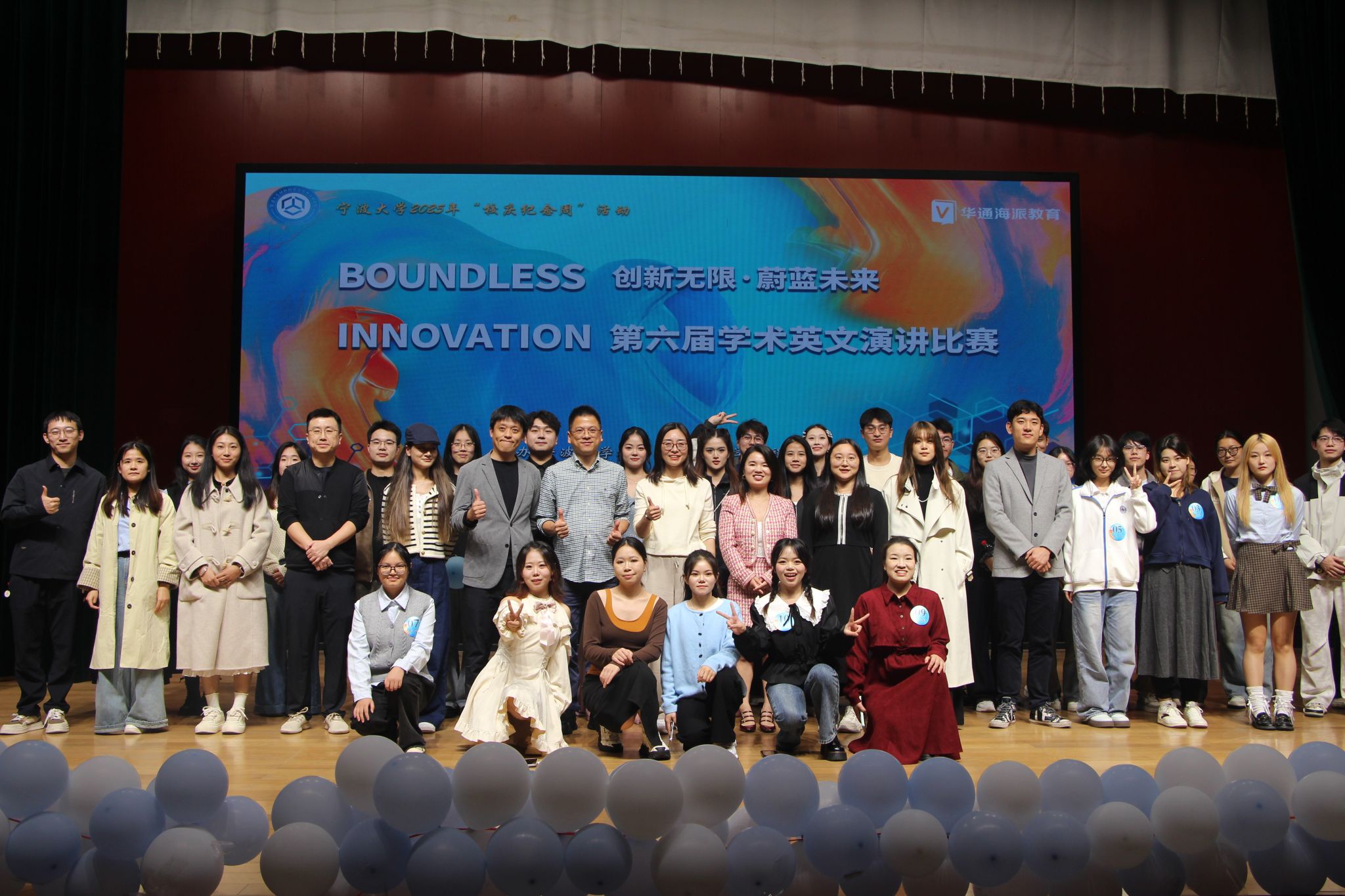 于10月30日18:00在北校区忻元甫报告厅顺利举行第六届“新观点·蔚蓝未来”学术英语演讲比赛。本次活动以“Boundless Innovation & Blue Future 创新无限·蔚蓝未来”为主题,旨在激发学生学术热情,提升英语表达与跨学科交流能力,营造开放包容、勇于创新的校园学术氛围。