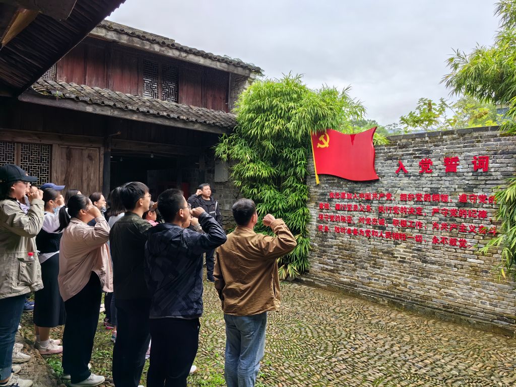 上午,党员首先来到梅花村会议纪念馆,追寻那段红色记忆,重温了入党宣誓。该馆是烈士葛希曾的故居,主体建筑为二层传统砖木结构三合院。纪念馆内设有“不忘初心,牢记使命——梅花村会议专题展”、“梅花村会议书画藏品展”等展厅。“从隐蔽到公开武装斗争”,梅花村会议的顺利召开是浙东革命斗争的转折点,见证了浙东革命的开篇与胜利,以“凌寒独开”“斗霜傲雪”“暗影留香”的梅花精神,鼓舞着一代又一代人砥砺前行。
