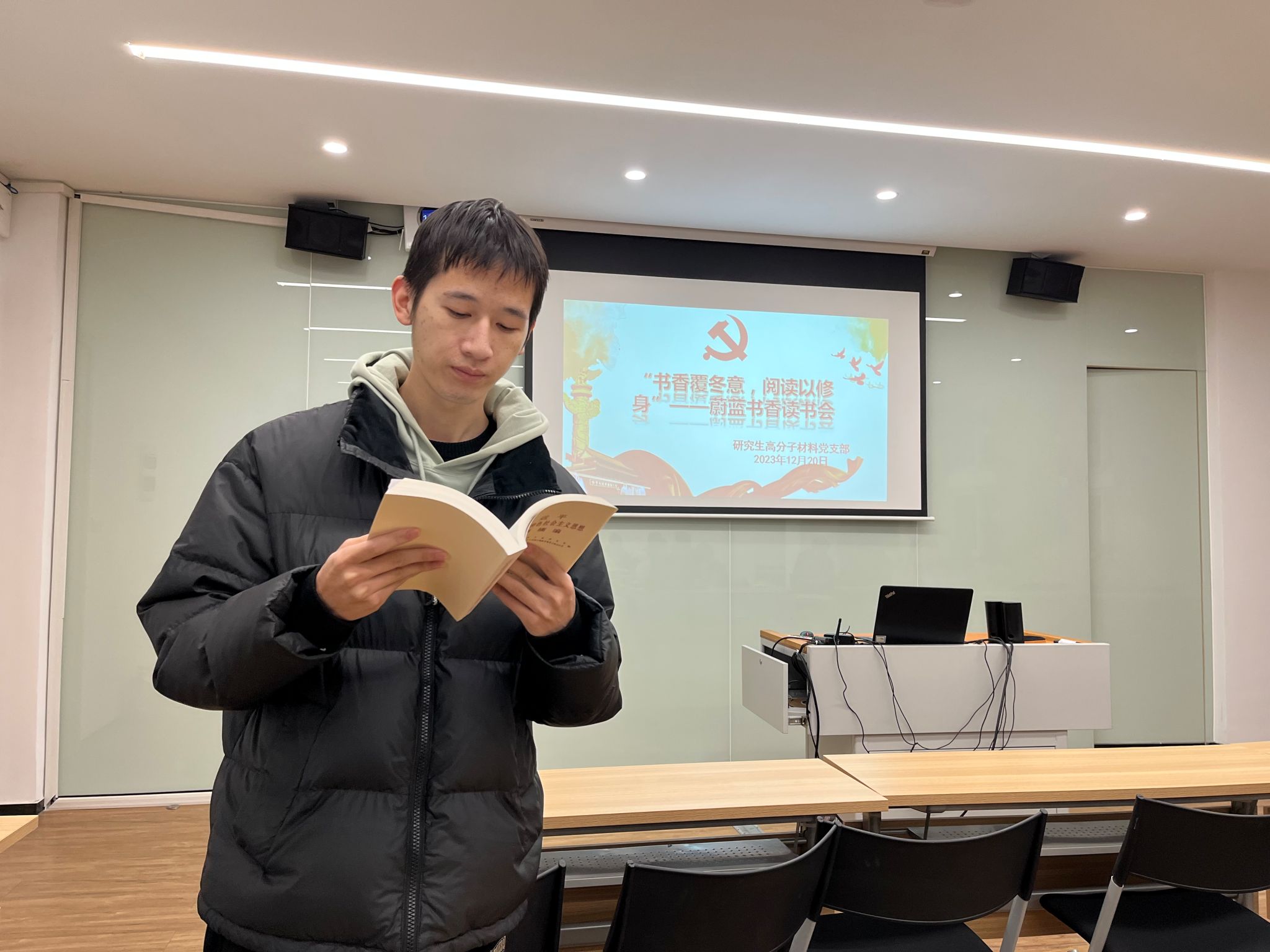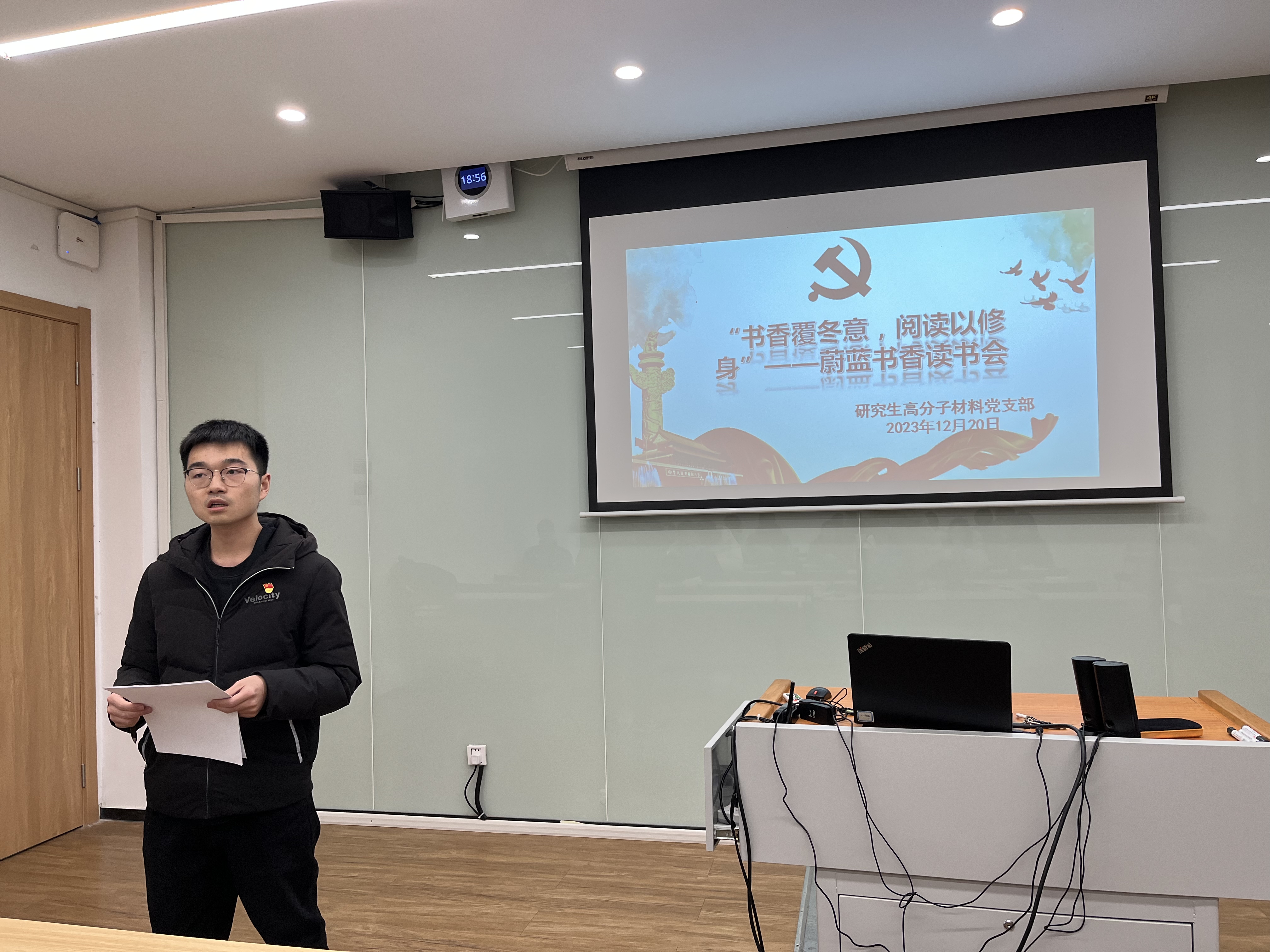 研究生高分子材料党支部承办,辅导员汤金燕老师、研究生高分子材料党支部全体党员参加。此次读书会阅读书目是《习近平新时代中国特色社会主义思想专题摘编》。