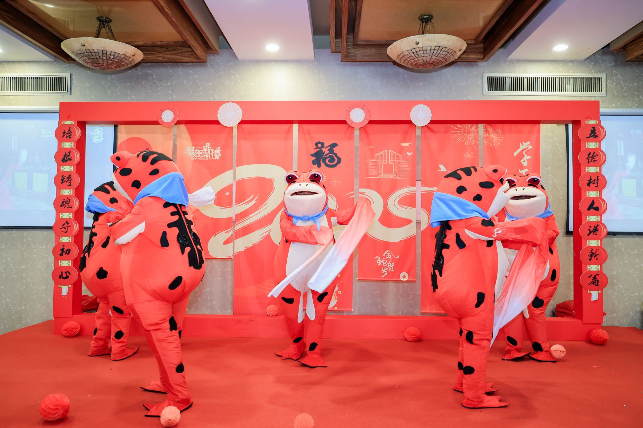 茶话会在院长丁传凡热情洋溢的致辞中拉开帷幕,他向全院教职工致以新年问候和由衷感谢,肯定了本年度学院在各项工作中取得的成绩,并对未来发展提出美好愿景。新晋职称教职工带来的舞蹈“萌蛙惊鸿舞”灵动活泼,瞬间点燃现场气氛。院长丁传凡演唱的《北国之春》,歌声婉转,赢得阵阵掌声。新入职教职工带来歌舞《相亲相爱》,展现青春活力。化学系薛金鹏的独唱《春雨里洗过的太阳》,学工办的情景演戏《学工阵线联盟》,化工系的合唱《真心英雄》,材料系的大合唱《相亲相爱的一家人》等节目精彩纷呈,充分展现学院教职工的风采。活动中穿插的游戏环节趣味十足,教职工们踊跃参与,欢声笑语不断。