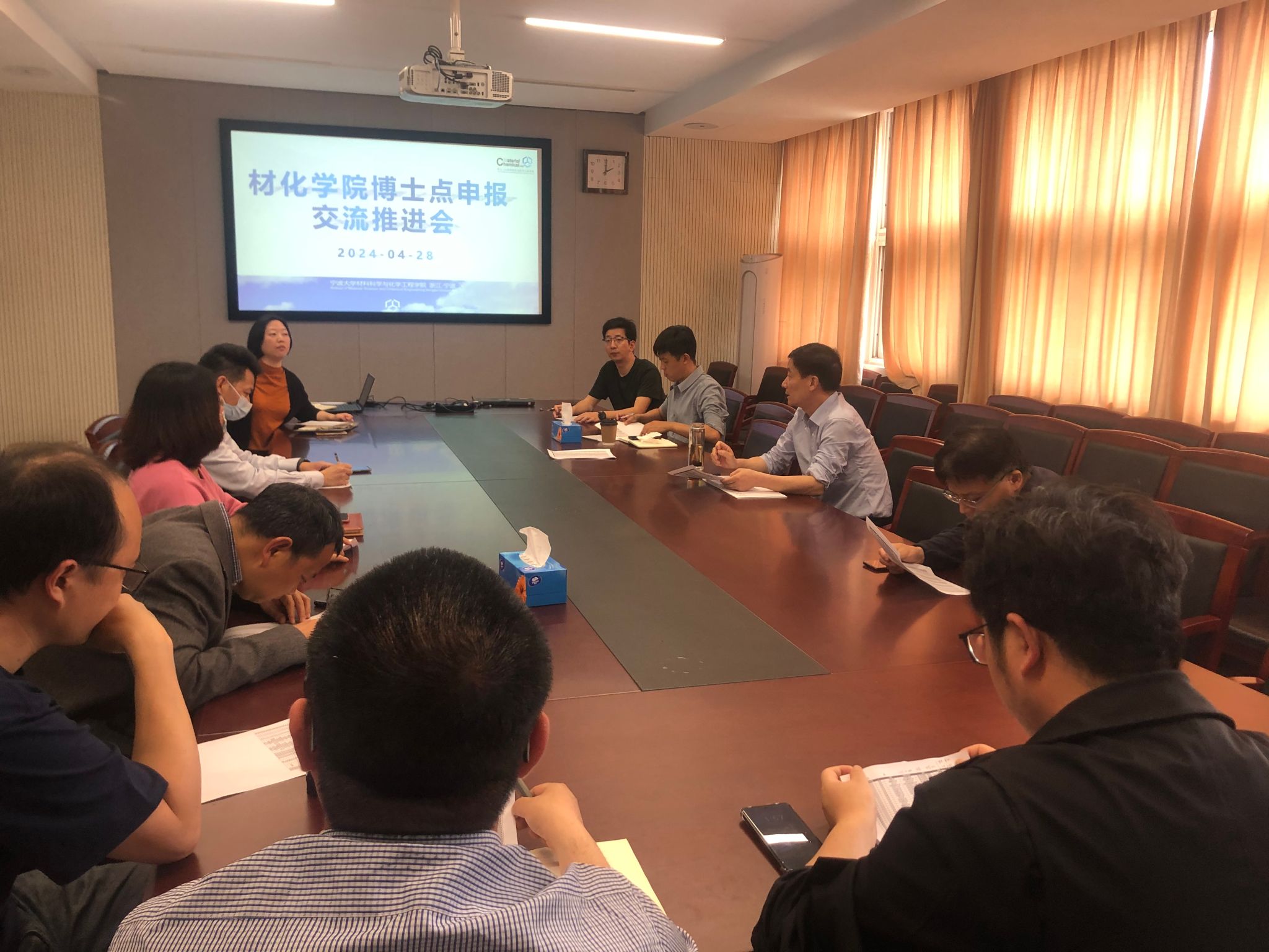 4月28日下午,我院在逸夫材化楼北楼227会议室召开化学博士点申报交流推进会。学院领导班子成员、研究所所长及系主任参会,会议由副院长周明炯主持。