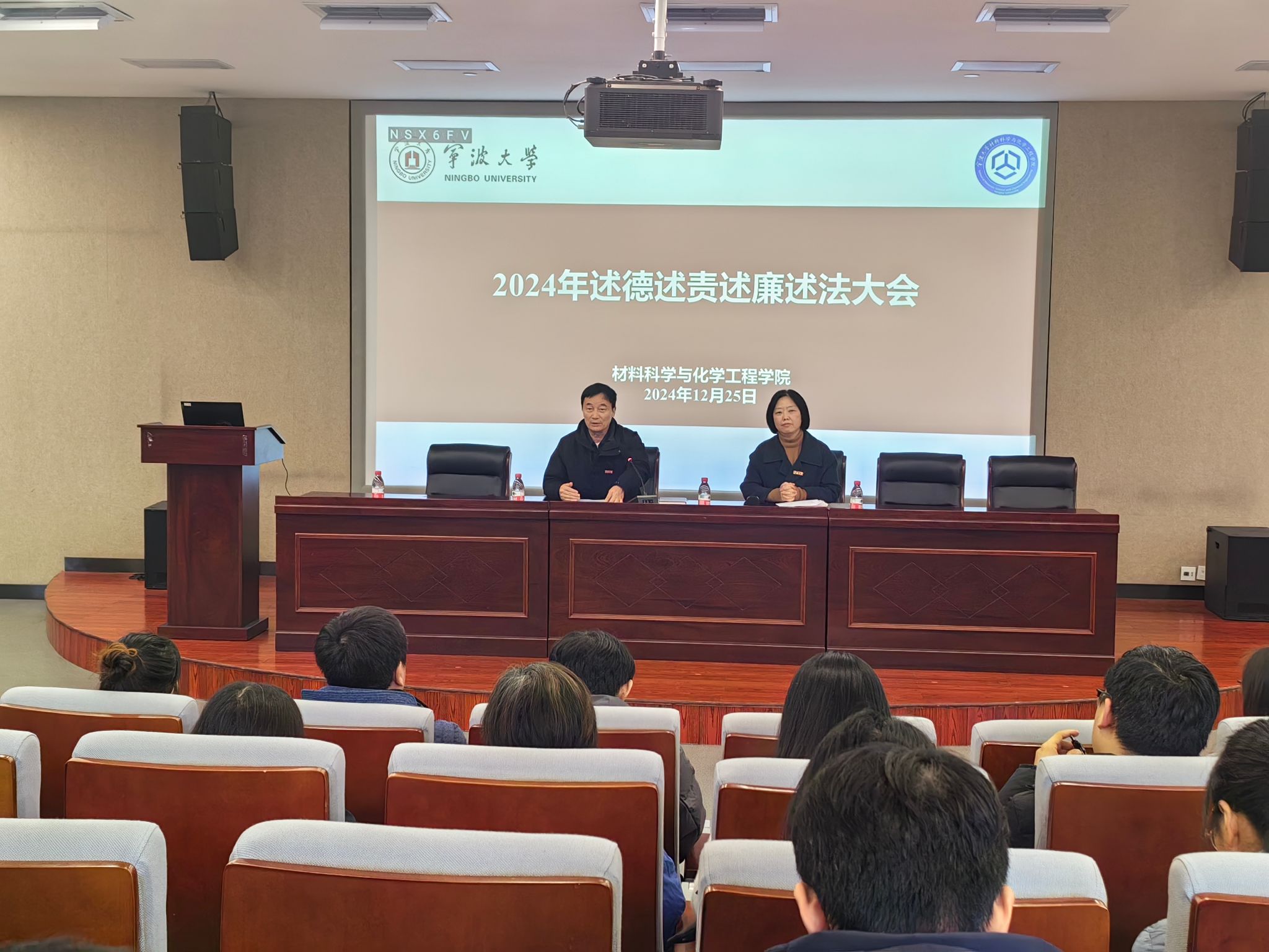 院长丁传凡代表班子进行述德述责述廉述法报告,对学院年度工作进行了回顾,提出下一年度工作思路和目标。他表示,2024年学院紧扣重点任务,促进质效提升,取得了多项标志性业绩;按照学院“十四五”规划,深入实施高质量内涵式发展战略;精心谋划学院“十五五”规划,以党建工作为引领,全面提升学科建设水平,在师资队伍、人才培养、科学研究、地方服务、国际化等方面取得卓越成就。随后,党委书记和院长分别进行了个人的口头述职。