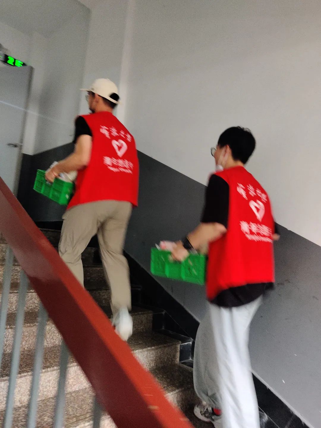的学生大部分居住在北区学生二村内,但仍有一部分住在本部甬江宿舍区之内,跨越两个校区。当学生们反映食物及物资缺乏的情况后,孙巍副院长、李天华老师与同时驻校的朱倩倩、吕滨、李淼三位老师迅速组成一支随叫随到的物资运送小分队,他们通常群体出动,有时借用电瓶车为坐骑,有时又齐刷刷拉着小推车上阵,师生们称他们为探花做爱