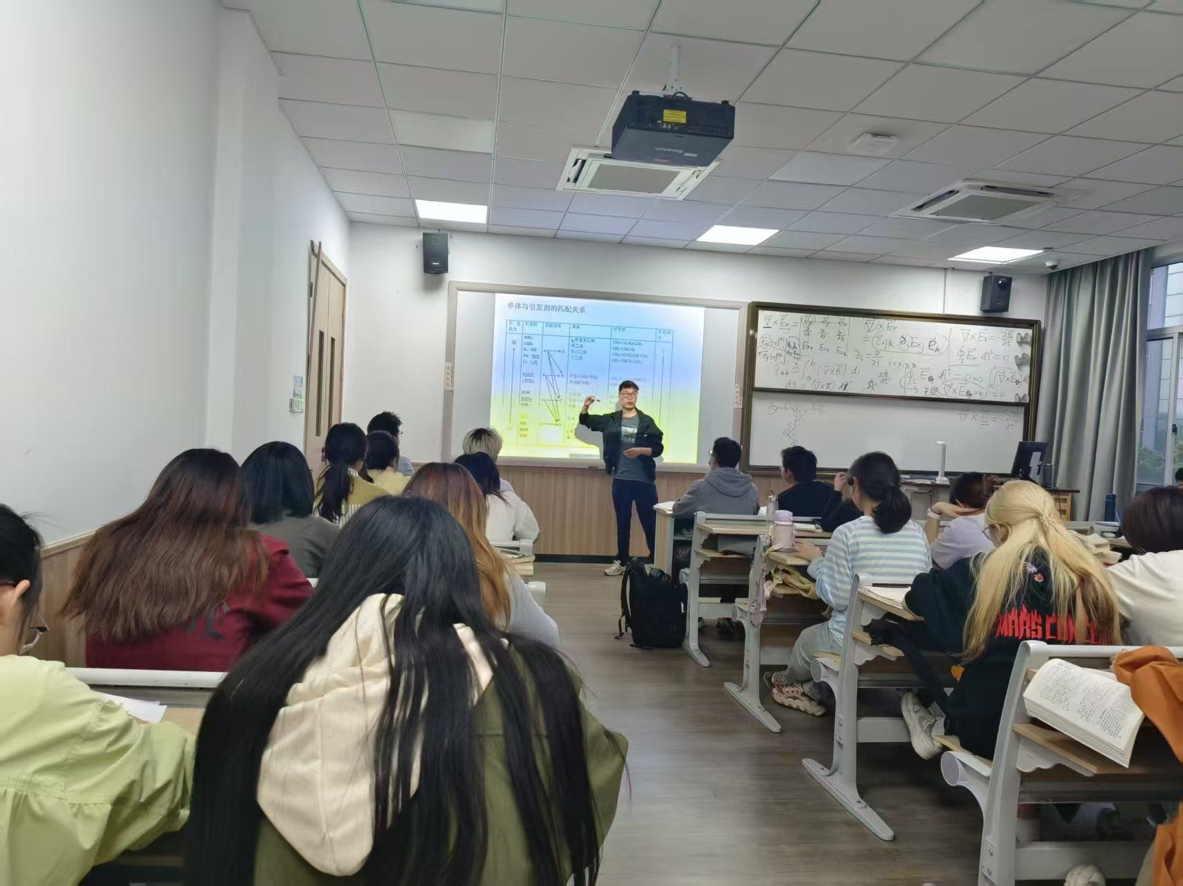 在北区2-311为2023级化学专业三个班级开展“离子型聚合应用实例”专题授课。