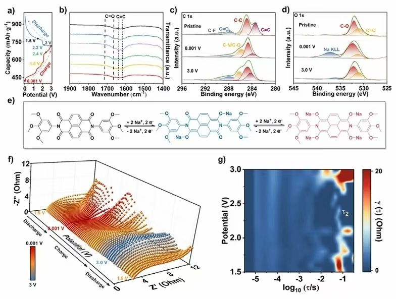 近日,我院韩磊教授团队在国际权威期刊Angew. Chem. Int. Ed. 上发表题为“A Donor-Acceptor-Donor-type Organic Molecule as Effective Electrode to Form Rapid Diffusion Pathway for High-performance Sodium-Ion Batteries”的研究。文中针对钠离子电池发展需求,设计合成了兼具D-A-D结构和p-π共轭的萘二酰亚胺基有机电极材料(NDI-DTMA)。该材料通过甲氧基官能团解决了电极的溶解问题,同时促进了钠离子扩散动力学,D-A-D结构能优化电子传输,有效提高电导率。实验表明,NDI-DTMA在大电流密度下展现高容量和长循环稳定性。此研究为有机电极材料开发提供新思路,助力高性能有机钠离子电池发展。