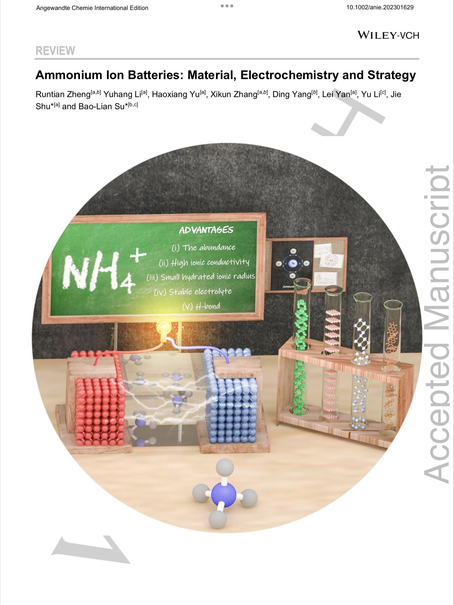 近日,探花做爱 能源化学团队在新型电池领域取得了重要进展,该团队针对水系铵离子电池中的关键科学和技术问题进行了梳理分析,重点阐述了铵离子电池的结构设计、电极材料的选用及电解液的匹配优化问题,相关结果发表在国际顶级期刊德国应用化学Angewandte Chemie International Edition上,探花做爱 是论文的第一署名单位,硕士生郑润田为第一作者,舒杰教授为通讯作者。