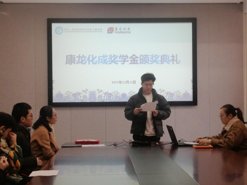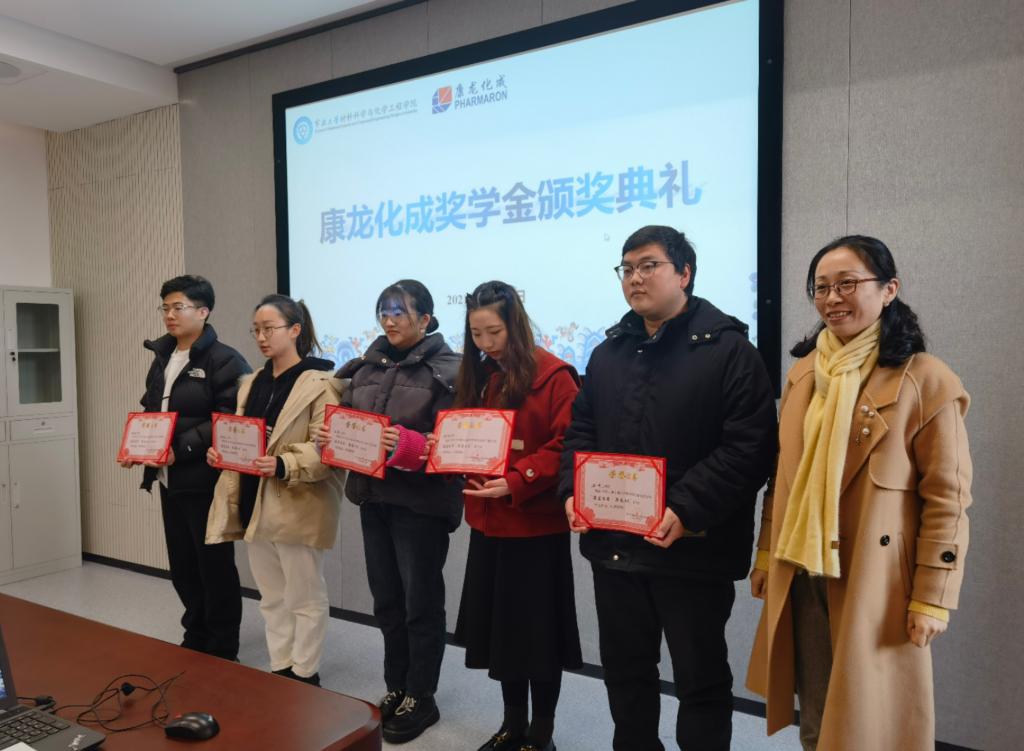 最后,院党委副书记向获奖同学进行了颁奖,并讲述了校友楼柏良博士设立康龙化成特色班及奖学金的初衷,并勉励在场同学们再接再厉,争取取得更大的成绩。