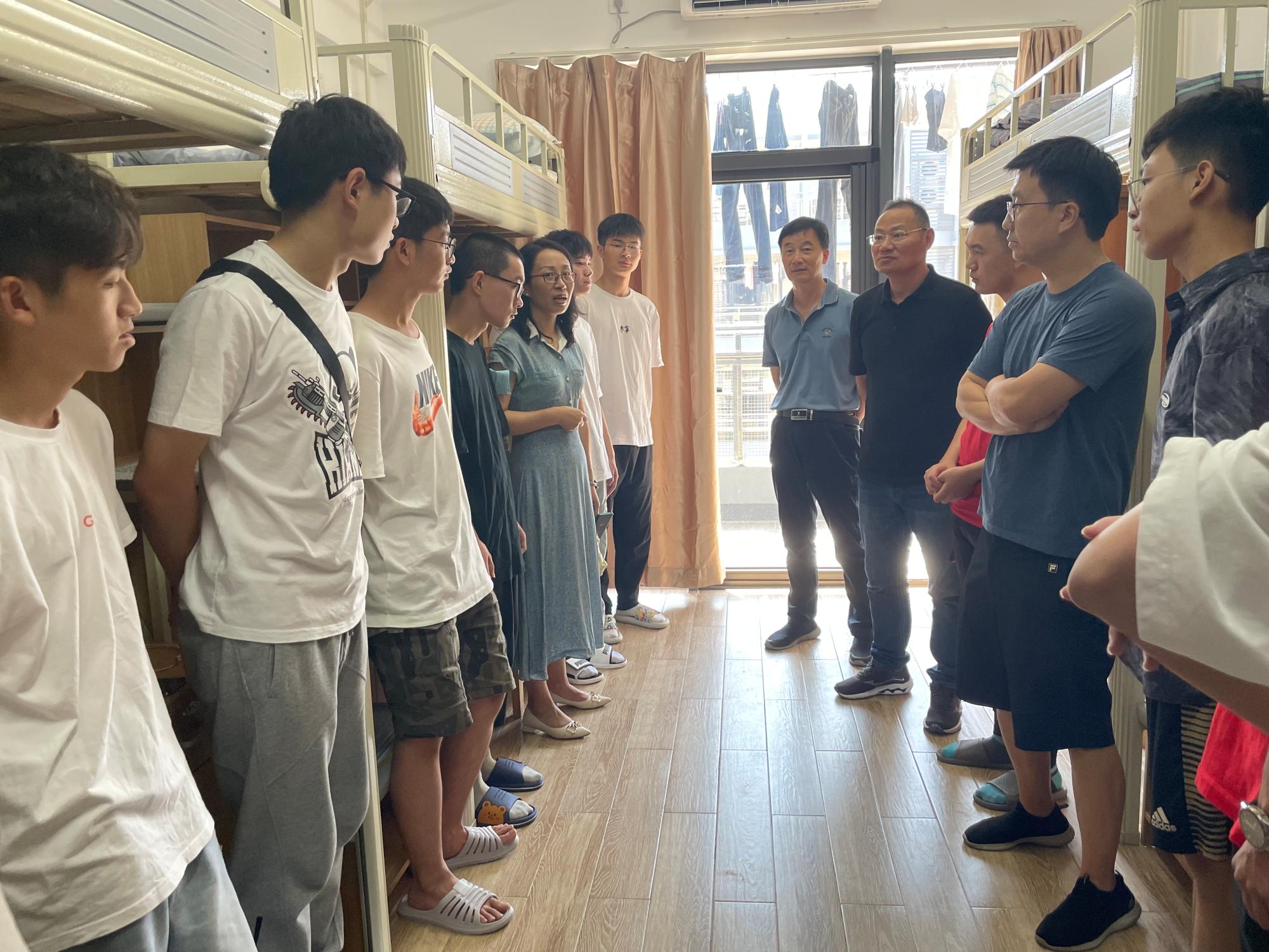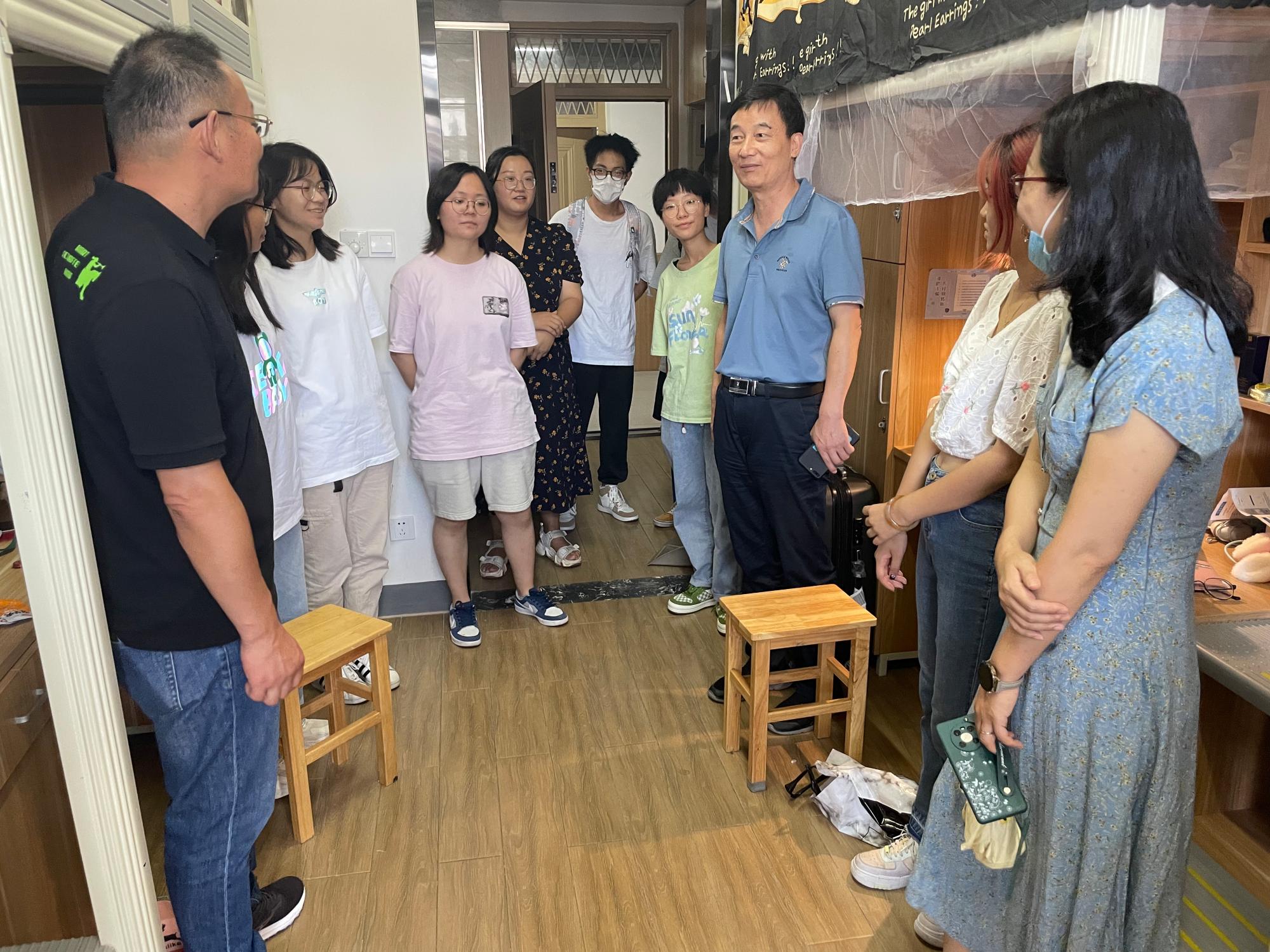 特聘院长丁传凡、党委书记罗云杰、副院长孙巍、党委副书记朱燕以及学院学工办辅导员一行来到2022级阳明新生寝室,深入了解探花做爱