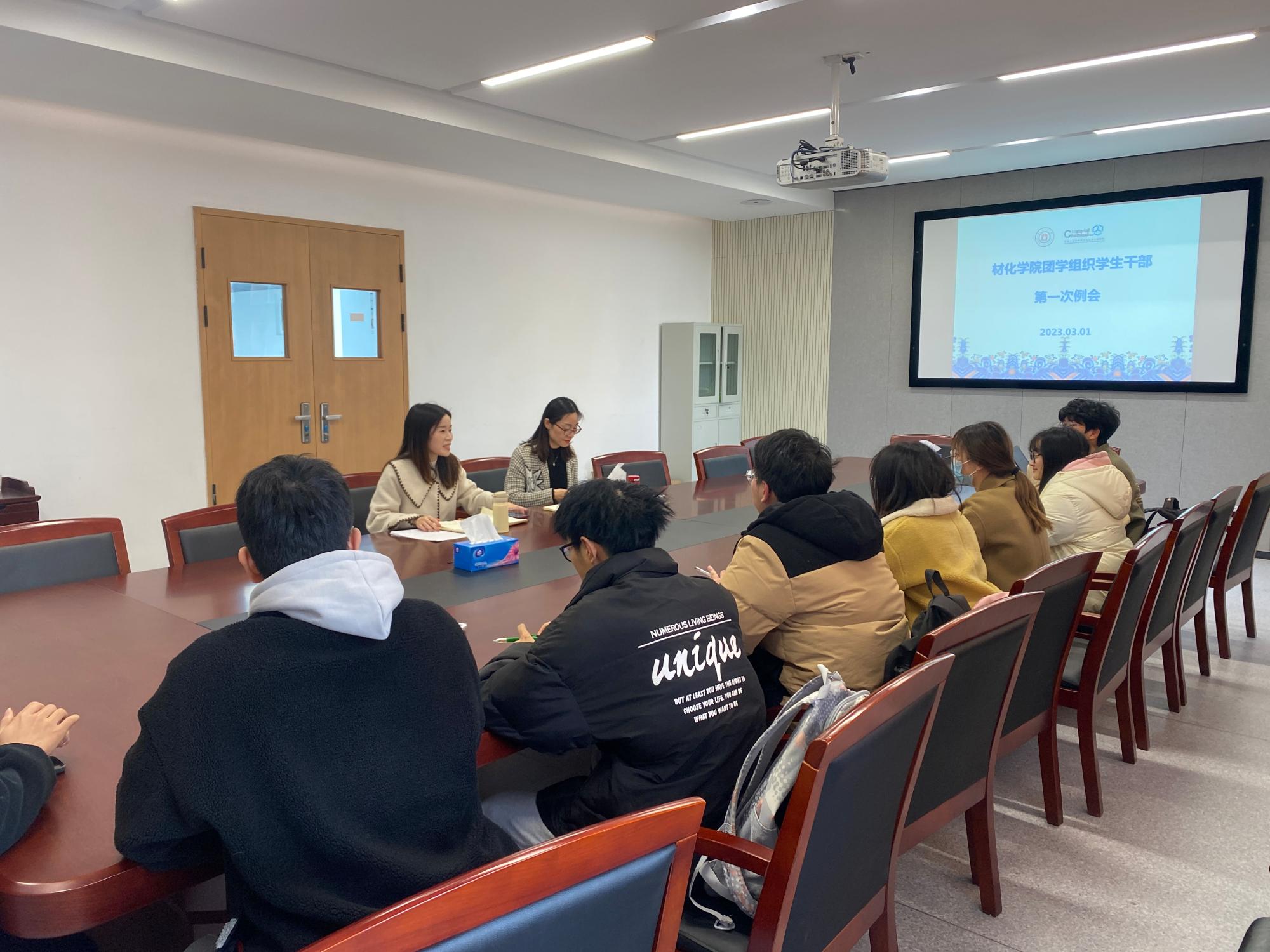 在慎思楼1227办公室召开新学期团学组织干部会议。院党委副书记尹慧、院团委副书记芦意、院团委、学生会、青协、研会各组织负责人参加本次会议。