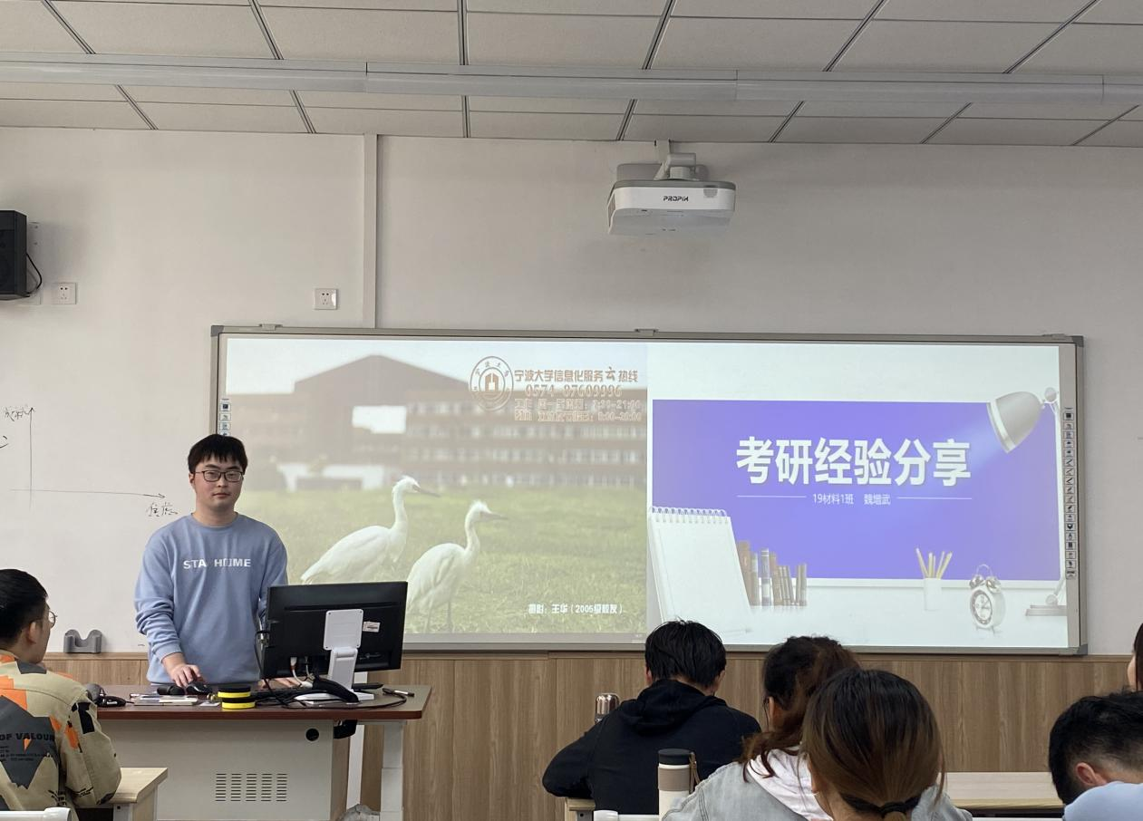 的魏增武学长从院校选择、初试和复试的准备几方面进行了分享,对思想政治理论、数学二、英语二、材料科学基础等不同类型的课程,逐一细致地讲解了自己的学习方法,并分享了学习资料。同时,魏增武学长也劝诫同学们切勿用时长自我感动,选择合适自己的学习环境,注重提高学习效率。