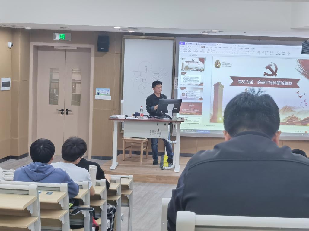 韩磊副院长给我们带来了《学史力行,弘扬科学家精神》的讲座,随后院党委委员张利老师讲述了目前我们国家半导体领域的现状。新时期新任务下的今天,广大青年特别需要弘扬科学家精神,向科技工作者学习,学习他们的家国情怀与爱国热忱,学习他们不慕名利、潜心研究的奉献精神,胸怀祖国、服务人民,勇攀高峰、敢为人先。