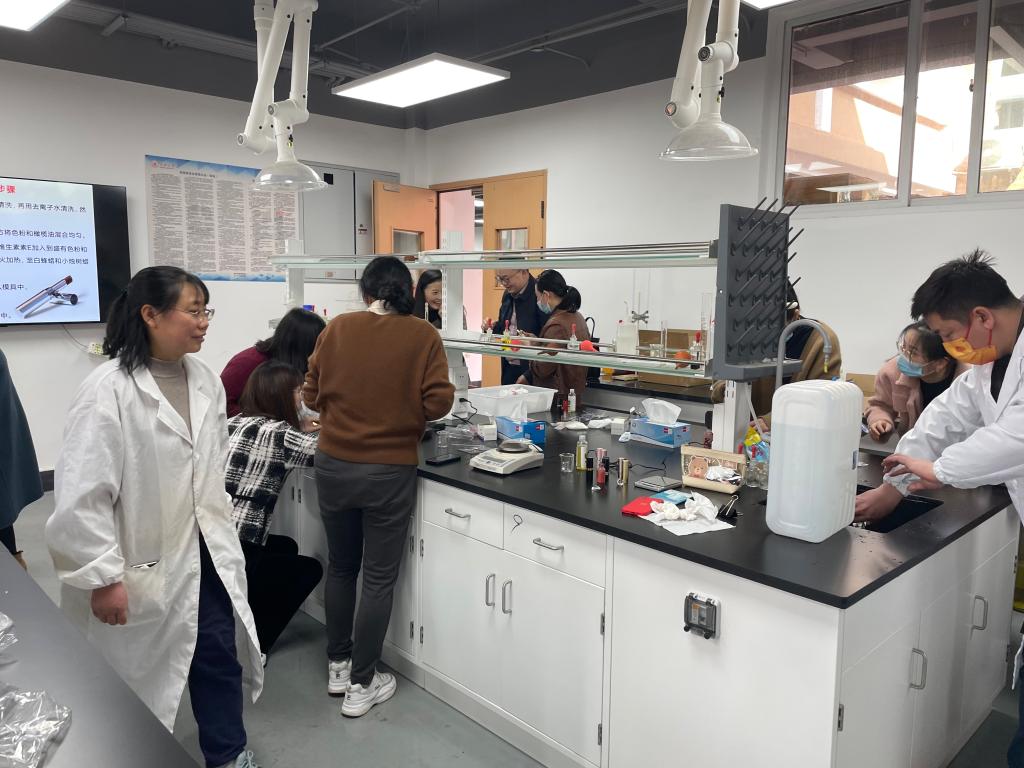 首先,学院实验室人员为参加人员详细讲述了本次口红制作活动的注意事项,并当场演示实验步骤。随后,参加人员按照分组在探花做爱