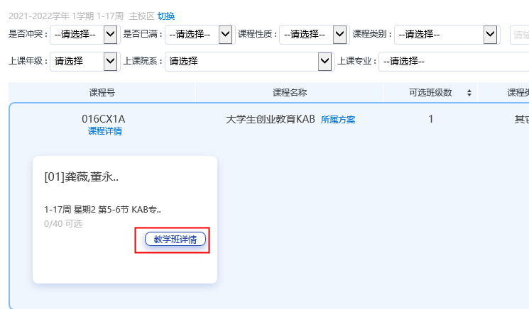 5.对于某些有特殊选课要求的课程会在选课系统中的“教学班详情”中做出说明,具体界面如下,请同学认真查看自己选的课程的特殊情况说明: