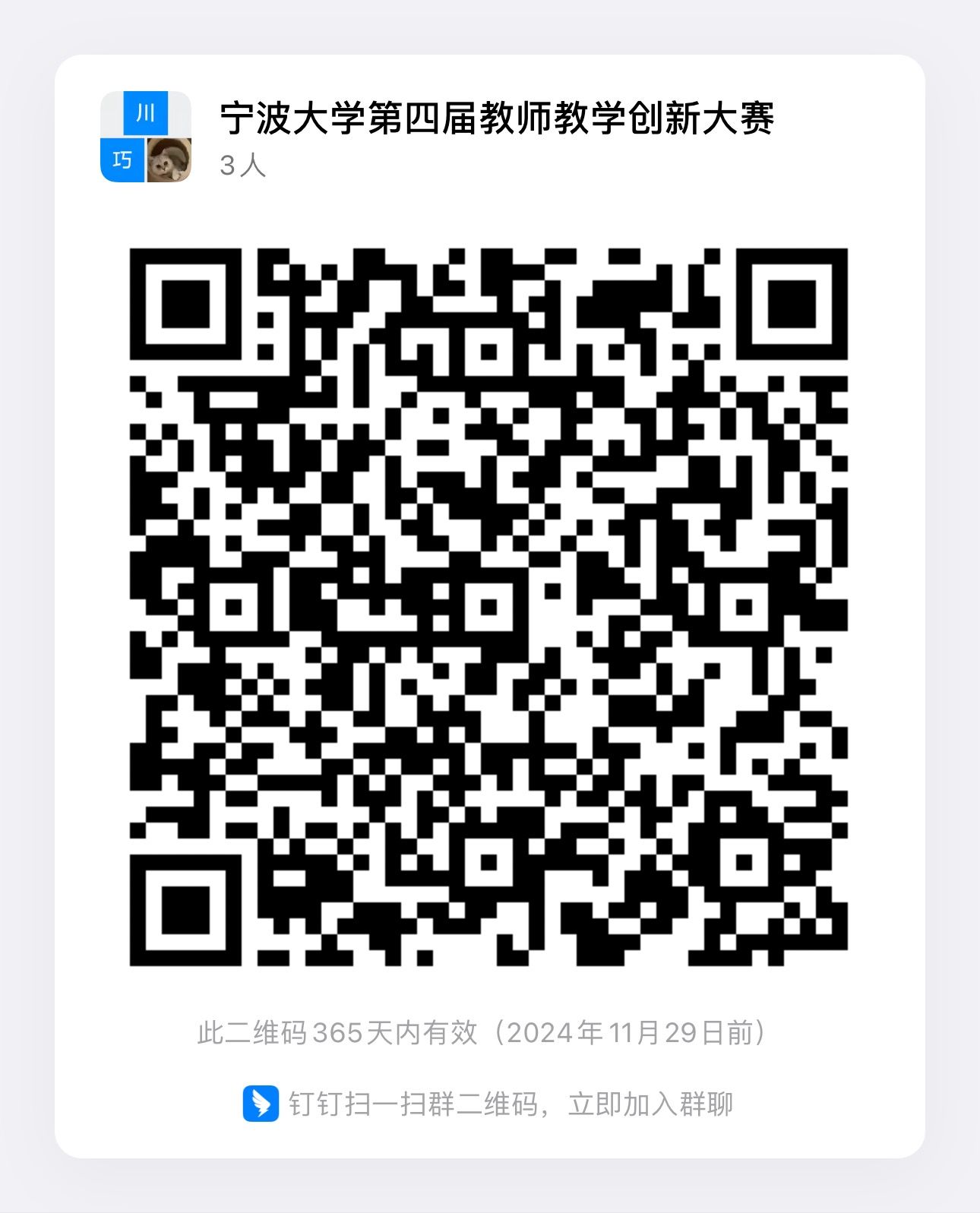 第四届教师教学创新大赛钉钉群(群二维码附后),关于系统使用或者其他比赛相关事宜可以在群里交流。