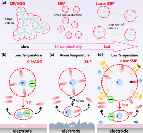 随着科技的不断进步,锂离子电池在众多领域的应用愈发广泛,但低温环境下性能衰减的问题却一直困扰着行业发展。商用锂离子电池电解液中,溶剂化结构多以溶剂分离离子对(SSIP)为主,这种结构虽能带来较高的离子电导率,但在零度以下的低温环境中,Li+与溶剂相互作用强烈,导致Li+脱溶剂化过程缓慢,严重影响电池性能。此前,科研人员尝试将策略重点放在形成以接触离子对(CIP)或聚集体(AGG)为主的溶剂化结构上,通过增强Li+-阴离子配位来加速界面电荷转移,然而这些方法却因离子间相互作用的增强,损害了体电导率,这揭示了脱溶剂化动力学与离子迁移之间难以调和的权衡关系。